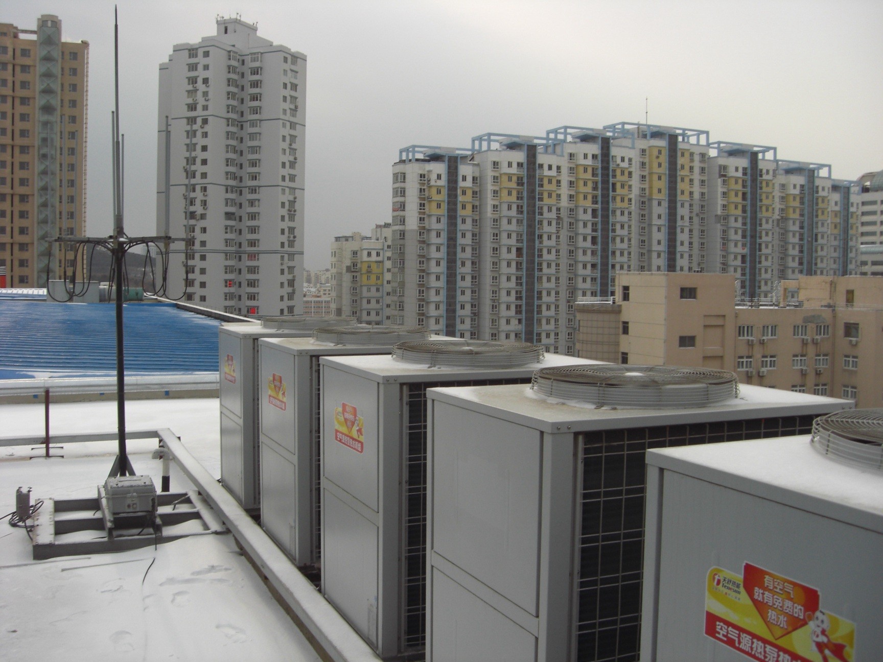 韋德伍斯浩沙健身會(huì)所位于美麗的海濱城市——大連。該會(huì)所坐落于大連市開發(fā)區(qū)。選用5臺(tái)天舒低溫型空氣源熱泵機(jī)組。每天制取50T熱水。針對(duì)大連地區(qū)冬季的嚴(yán)寒程度,將50T保溫水箱放置在室內(nèi),將天舒空氣源熱泵熱水機(jī)組放置在樓頂。最大限度保證了冬季的熱水保溫效果。采用變頻恒溫恒壓的供水方式使每個(gè)參加健身的客戶都能充分享受到沐浴所帶來的快感!同時(shí)最大限度降低了該會(huì)所的經(jīng)營(yíng)成本。
