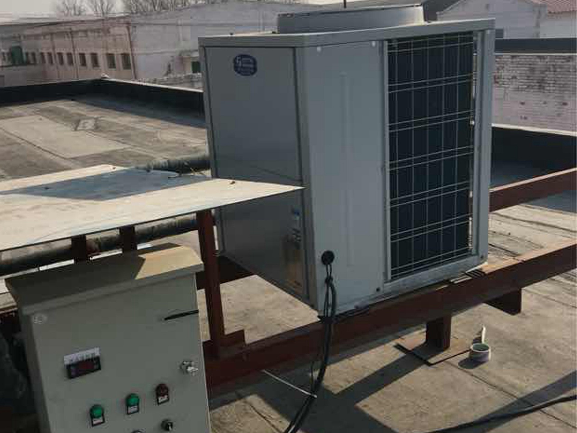 本項(xiàng)目為北京言午門窗有限公司空氣源熱泵采暖系統(tǒng)工程。本工程共分五個(gè)系統(tǒng)。各系統(tǒng)獨(dú)立運(yùn)行,相互不受影響。空氣源熱泵設(shè)備主機(jī)及循環(huán)水泵根據(jù)現(xiàn)場(chǎng)實(shí)際情況放置在各區(qū)域的樓頂。要求每幢樓的采暖溫度不能低于18℃。采用天舒低環(huán)境溫度空氣源采暖熱泵,在滿足使用需求的前提下,大大降低了運(yùn)行費(fèi)用。