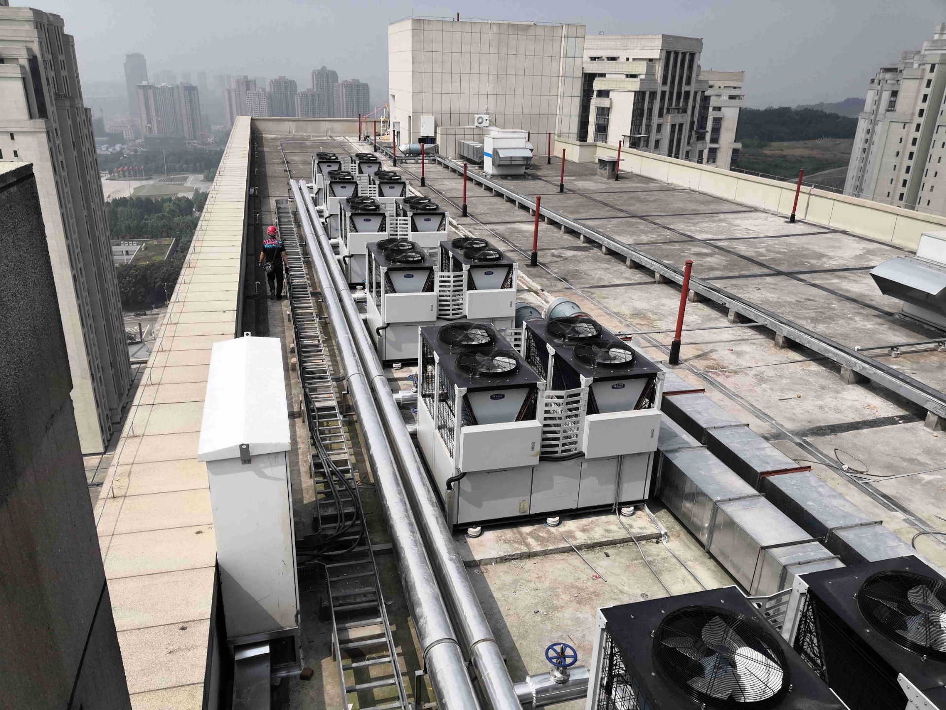 重慶渝北區(qū)人民醫(yī)院,位于中央公園片區(qū),于2019年12月底竣工驗收,按三級甲等醫(yī)院及教學醫(yī)院規(guī)劃設計,項目建設規(guī)模約16萬平方米,設計床位約1490個,投資約12億元。2020年4月18日正式開業(yè)。醫(yī)院采用天舒空氣源熱泵熱水系統(tǒng),為病房提供24小時舒適熱水。
