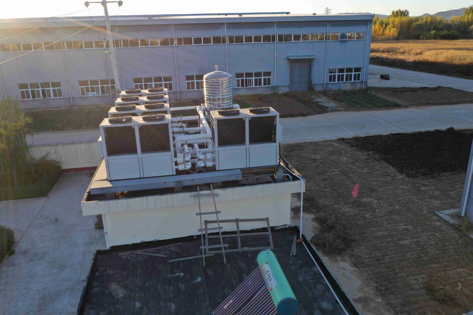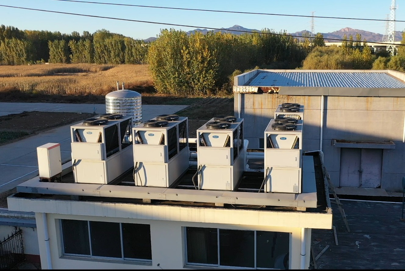 建筑面積4000㎡,建筑層高3層,主體承重墻37mm、外墻體有保溫;采暖形式為地?zé)岵膳⒃腥济哄仩t更換為天舒空氣源熱泵系統(tǒng)。整套系統(tǒng)采用天舒超低溫空氣源熱泵采暖機(jī)組24匹共五臺(tái)。全套設(shè)備安裝在原有鍋爐房屋頂,在不變更原有采暖管道的同時(shí)采用閉式系統(tǒng)設(shè)計(jì),間接循環(huán)方式的全自動(dòng)化智能系統(tǒng)設(shè)計(jì)。